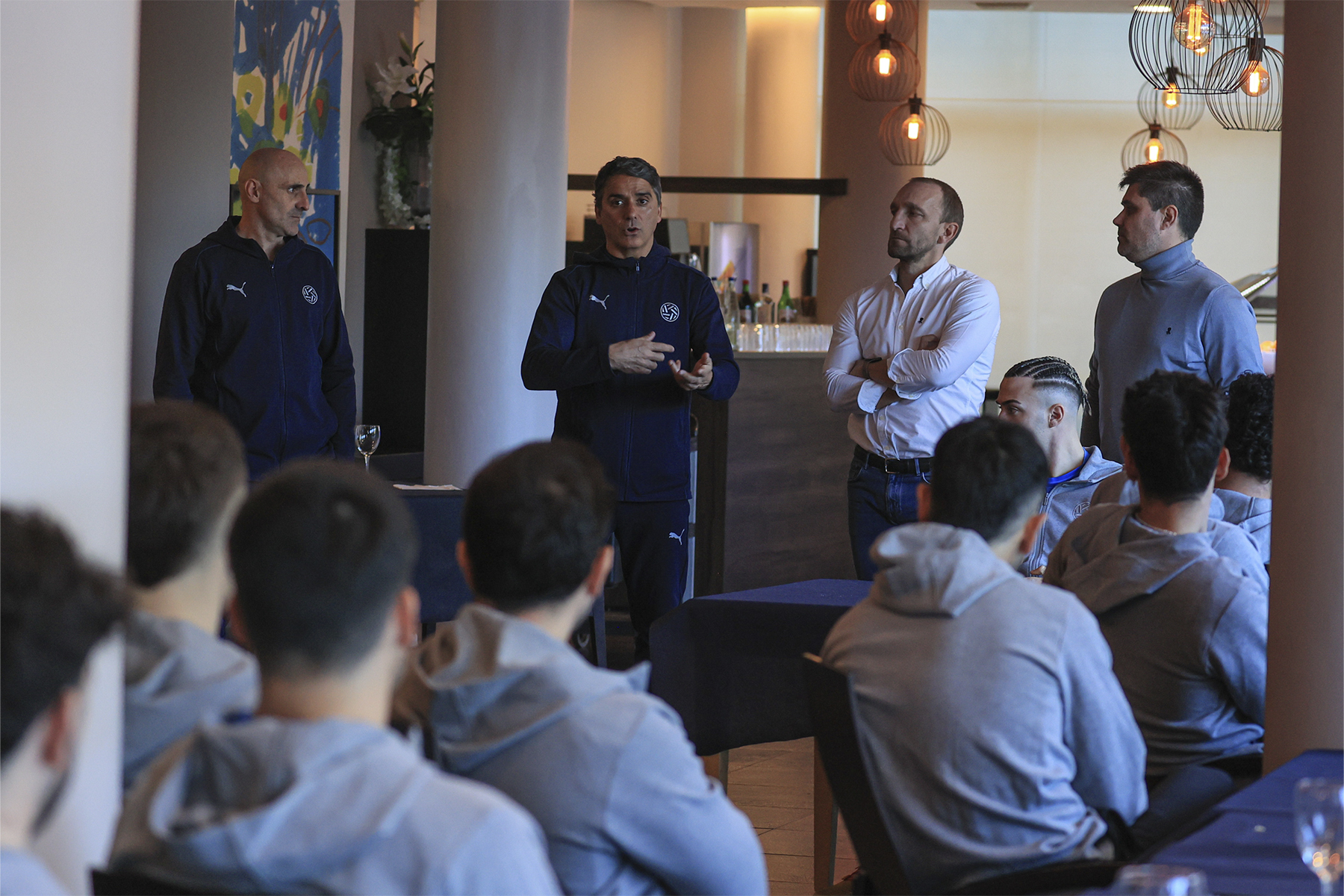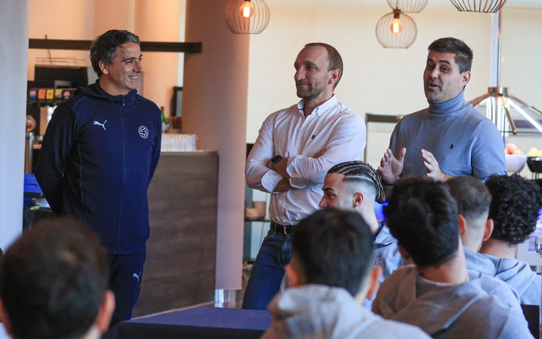 Los jugadores y miembros del cuerpo técnico y cuerpo auxiliar han sido recibidos por David Aganzo, presidente de AFE; Diego Rivas, secretario general; y Javi Gómez, responsable de 1ª, 2ª y 3ª Federación.