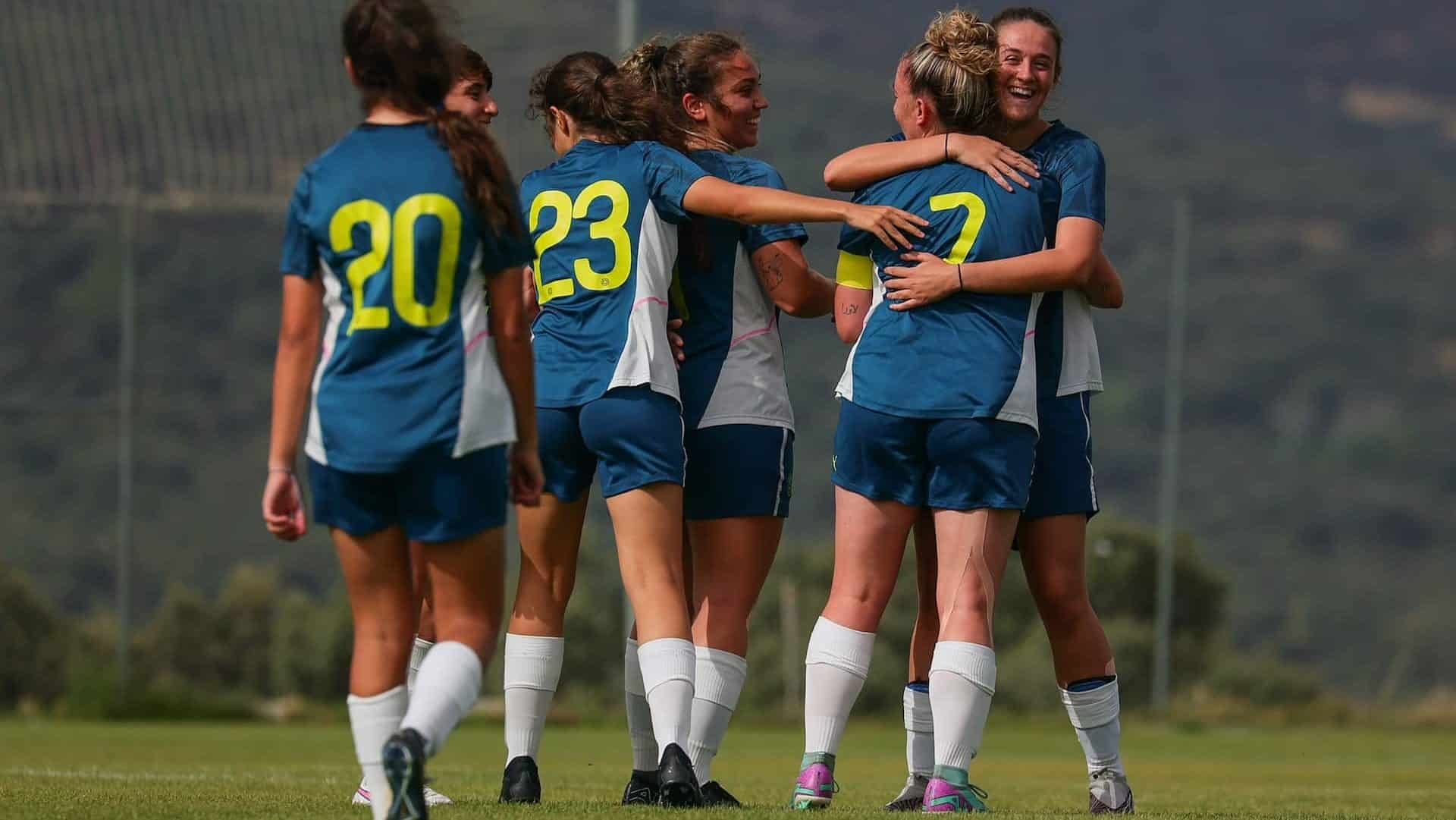 Si bien la creación en el centro del campo no fue tan fluida como en los anteriores amistosos y ya se empezaba a notar cierto cansancio, mandaban en el terreno de juego y la insistencia tuvo su primer fruto, obra de Andrea Vicente con un gran disparo desde fuera del área, entrando el balón por una escuadra de la portería del Juventud Roller.