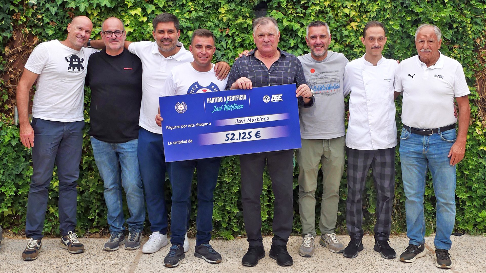 Por su parte, la Selección de Veteranos AFE, en manos de su capitán Marcos Senna, entregó una camiseta en recuerdo del partido a los Amigos de Javi Martínez. Los padres del pequeño, Javier y Ana, acompañados de sus dos hijos, recibieron de Pepín Liria y José María Manzanares, quienes también quisieron sumarse a la iniciativa, una camiseta que la Asociación de Futbolistas Españoles (AFE) había preparado con sus nombres a la espalda.